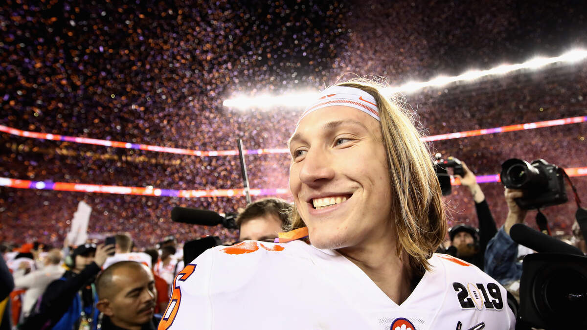 In just four games at Clemson, Lawrence won the starting job as a true freshman. He went on to lead the Tigers to an undefeated season and a national championship. In his sophomore season, Lawrence and the Tigers were one game away from having back-to-back perfect seasons. In the National Championship game, Lawerence had the worst passer rating of his career, completing just 18 of 37 passes for 234 yards and zero passing touchdowns in a 42–25 loss to LSU.