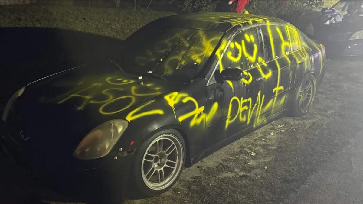 After questioning the teens, the 18-year-old admitted she egged and spray-painted the car because she was upset with her ex-boyfriend.